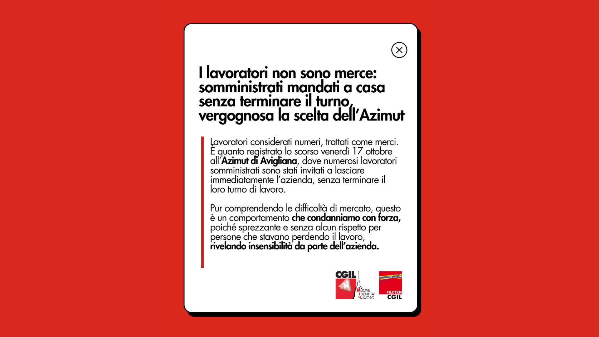 Pur comprendendo le difficoltà di mercato e riconoscendo che Azimut negli ultimi anni è stata una delle poche realtà industriali del territorio ad aver stabilizzato un numero significativo di lavoratori interinali, a seguito di una consolidata contrattazione sindacale aziendale, è indispensabile aprire da subito un tavolo di confronto con le Agenzie per il Lavoro, le stituzioni e tutti i soggetti interessati.